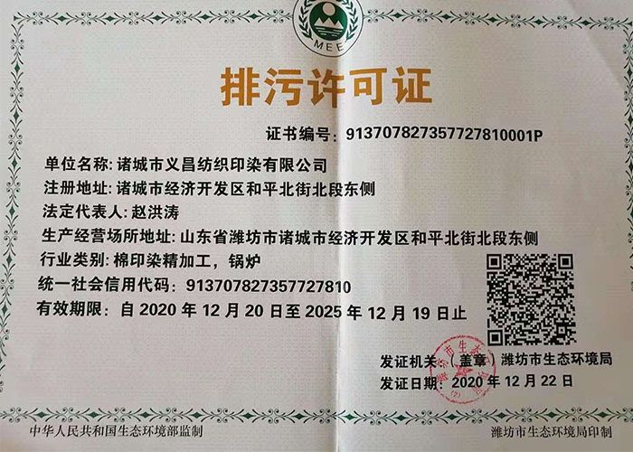 諸城市義昌紡織印染有限公司 通訊地址:山東諸城市開發(fā)區(qū)和平北街北段東側